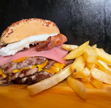 Carne x3, cheddar x3, bacon, jamon y huevo